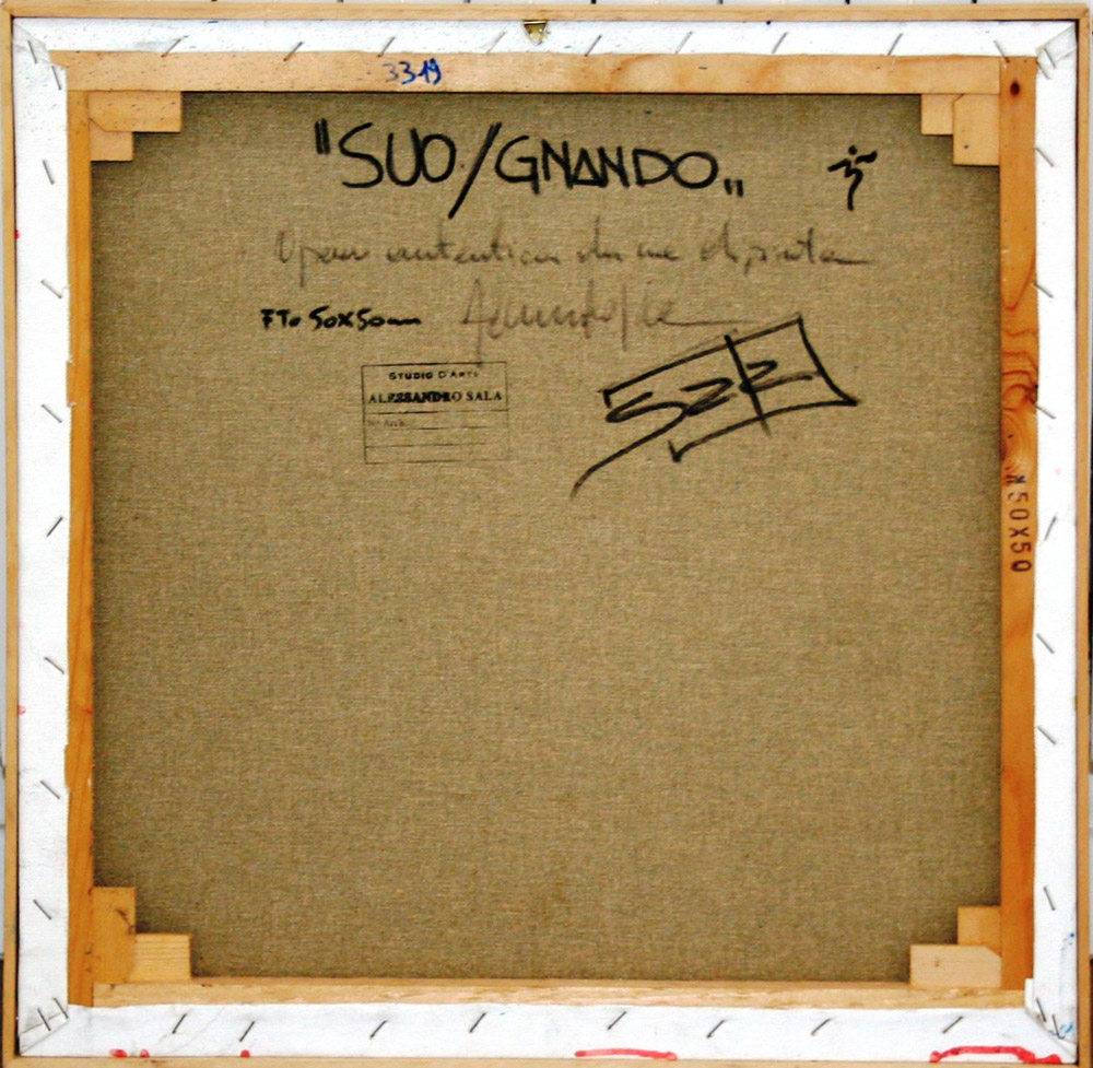 Alessandro Sala 1958, Genova (Ge) - [Italia] Suo(g)nando olio e sabbia su tela 50x50 2009 firma dell’artista in basso a destra e sul retro; con listello certificato di provenienza garantita Picenum