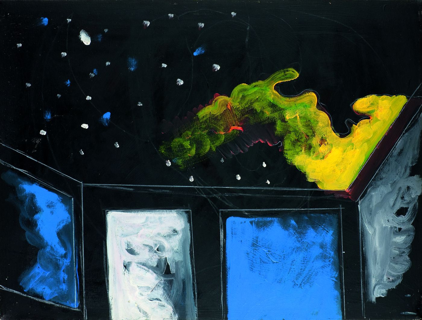 FESTA TANO (Roma 1938 – 1988) - "Oltre il muro" 1986, 60x80 olio su tela. Opera firmata e datata al retro. Già Galleria Guastalla, Livorno (etichetta al retro). Già Galleria Graphis, Livorno (timbro al retro sul telaio)