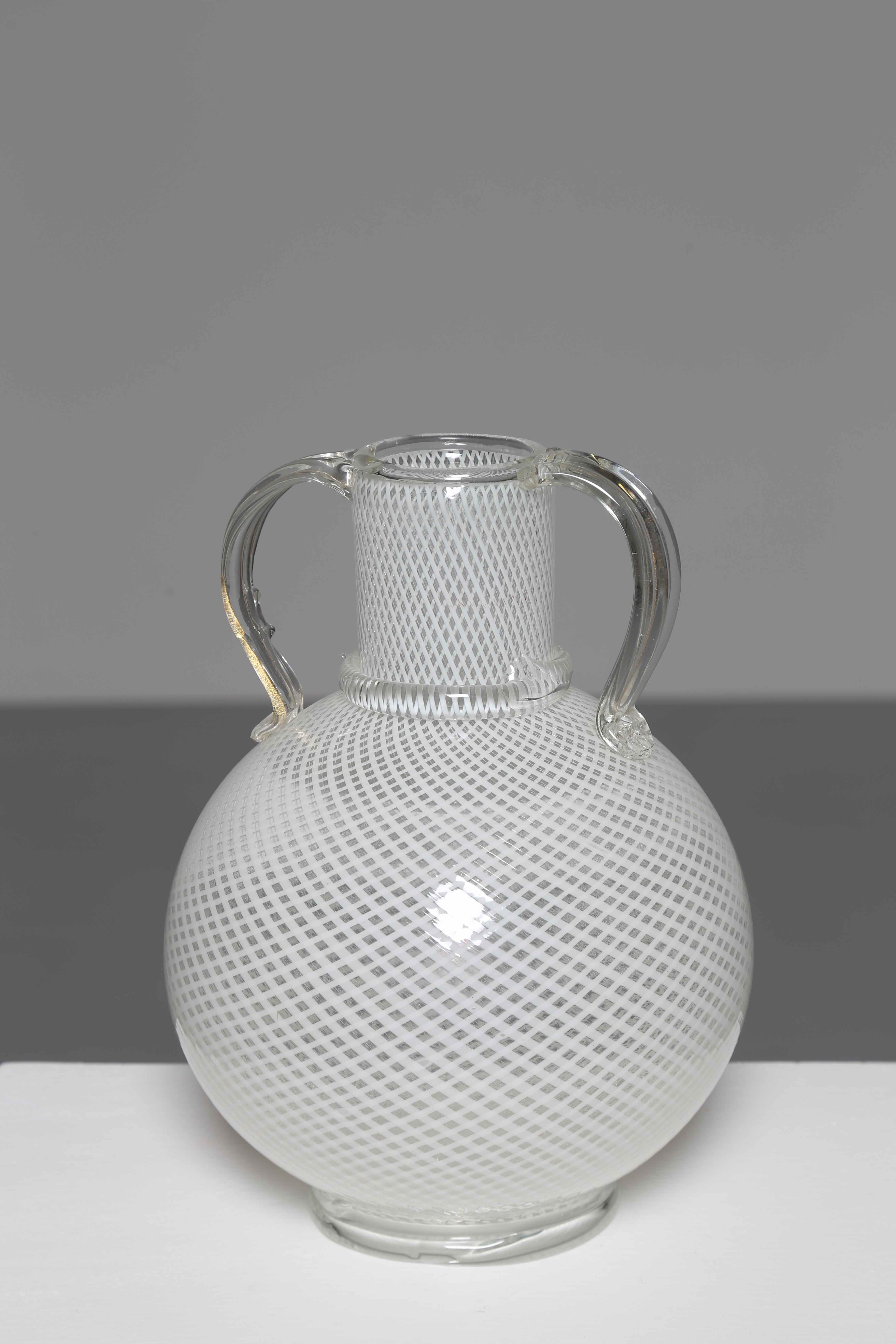 MARTENS DINO (1894 - 1970) Per Aureliano Toso. Vaso reticelle e anse. Vetro di Murano. Cm 24,00 x 30,00. Pubblicato sul Catalogo Generale Dino Martens - Muranese Glass Designer.