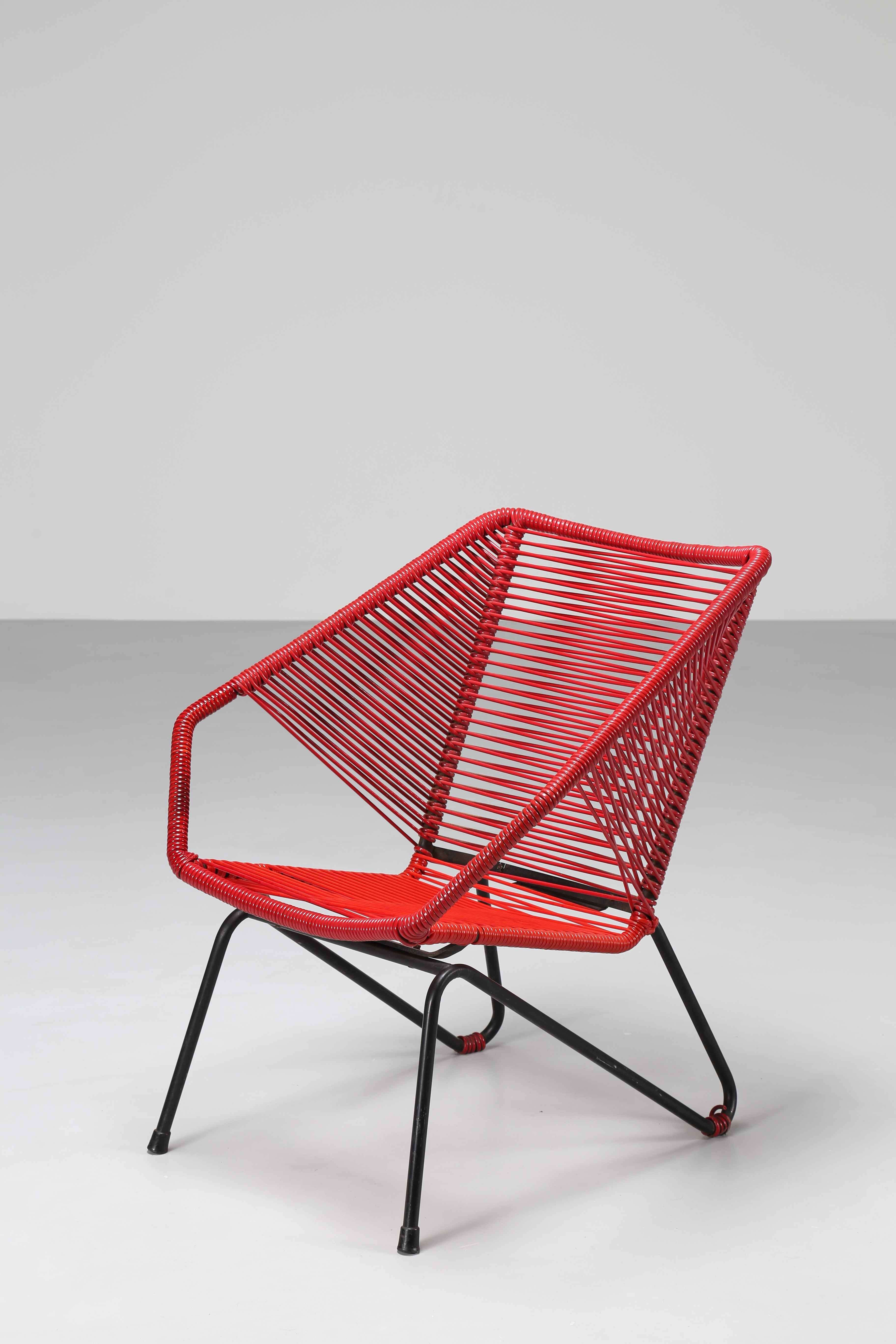 GELLNER EDOARDO (1909 - 2004) Oltroncina ideata per la terrazza dell'Hotel Bellavista di Cortina D'Ampezzo. Metallo, plastica. Cm 69,00 x 66,00 x 77,00. 1950/55