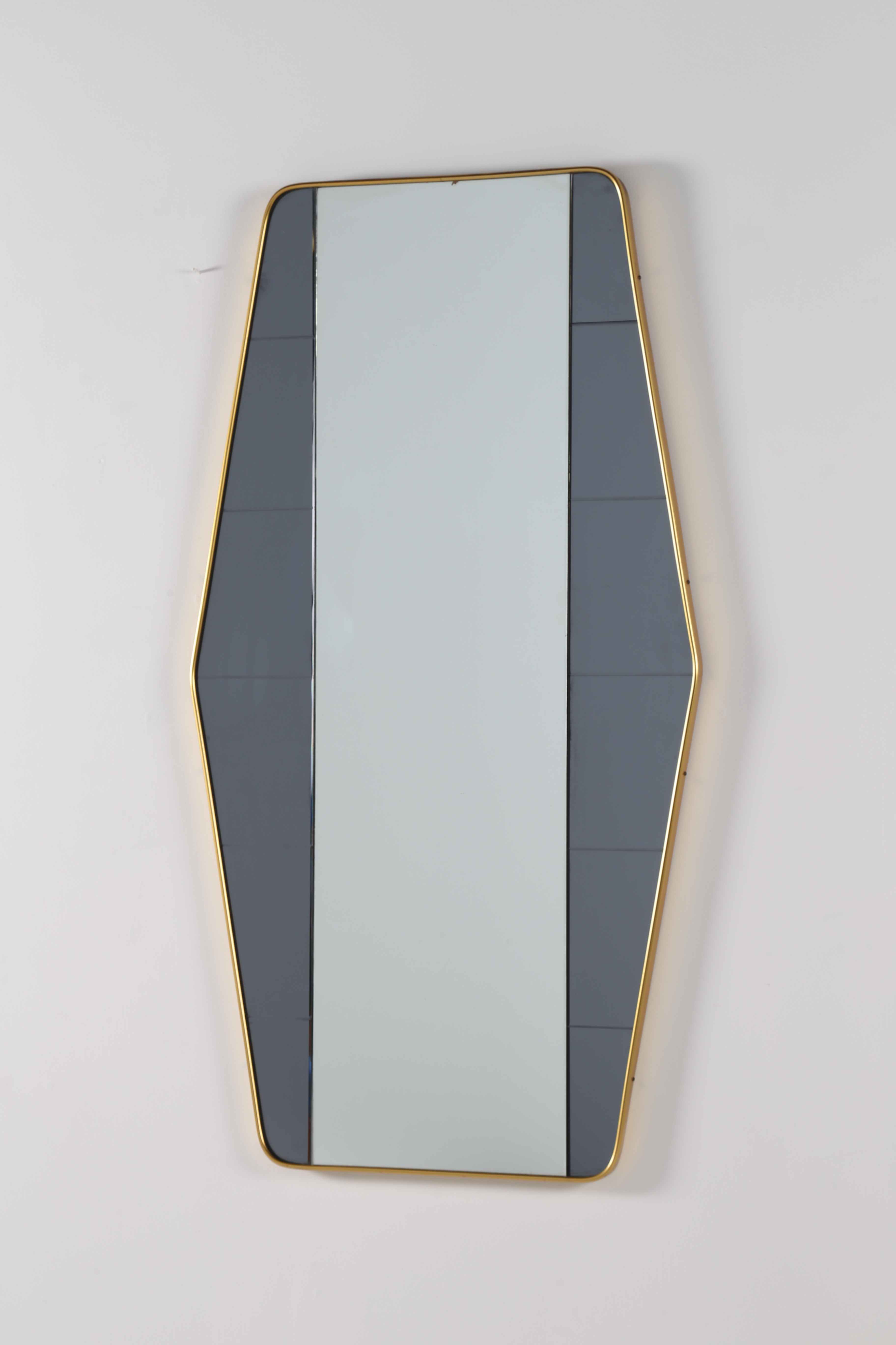 CRISTAL ART TORINO Specchio con cornice in ottone. Ottone e vetro. Cm 60,00 x 109,50 x 2,00.