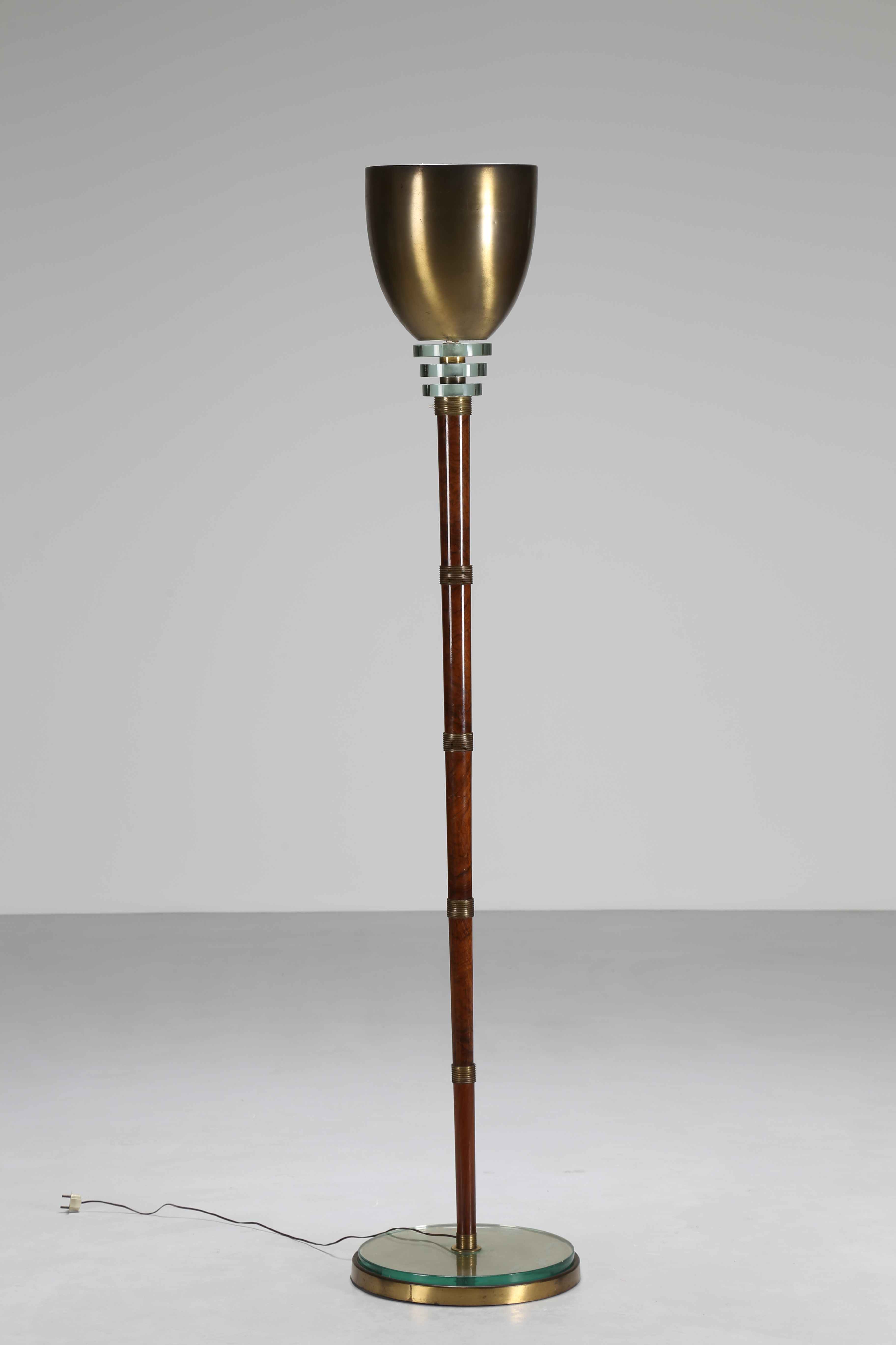 FONTANA ARTE Piantana. Legno, ottone, vetro. Cm 37,50 x 178,00. Anni '30.
