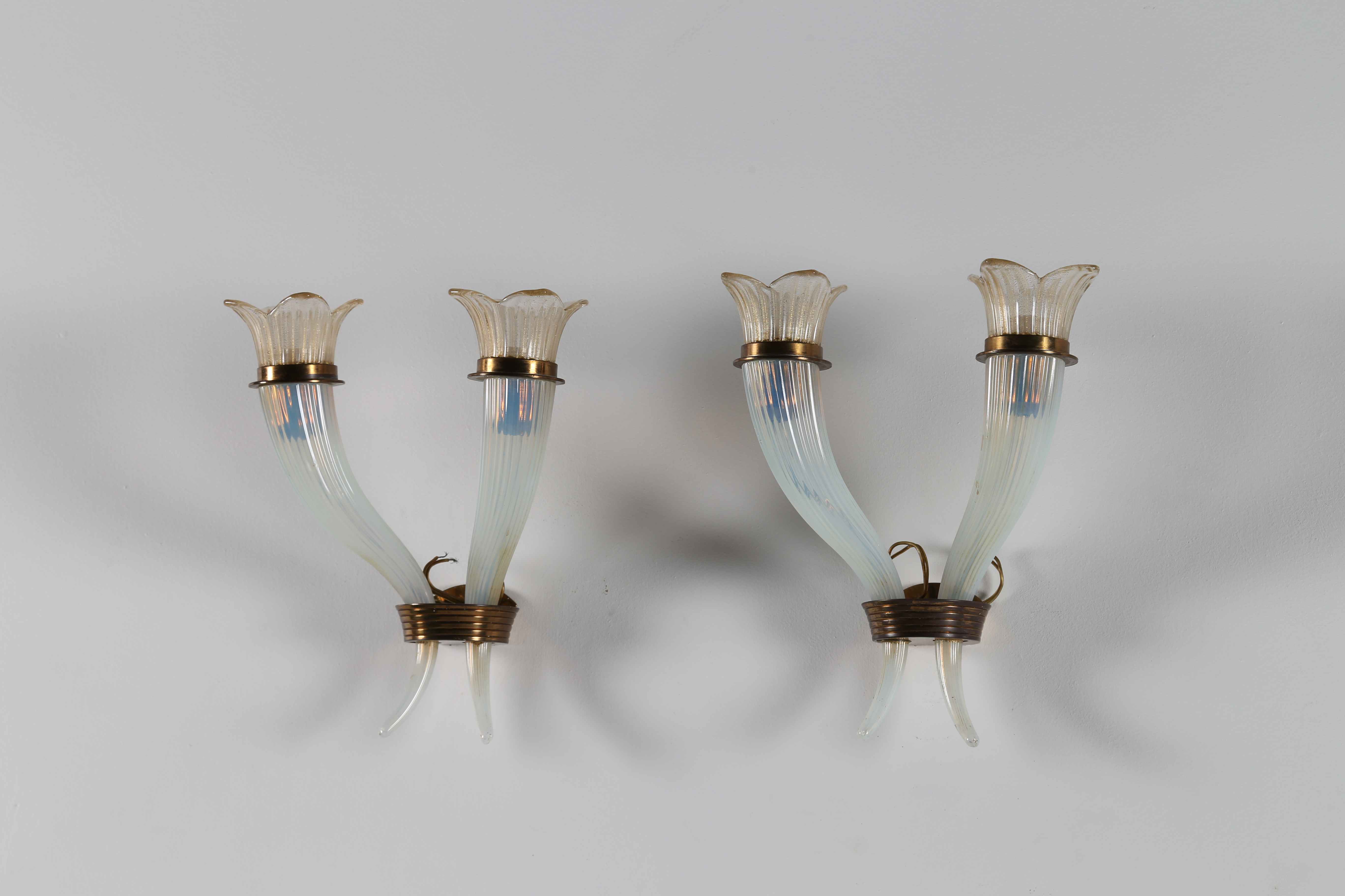BUZZI TOMASO (1900 - 1981) Per Venini. Coppia di appliques in ottone, vetro...