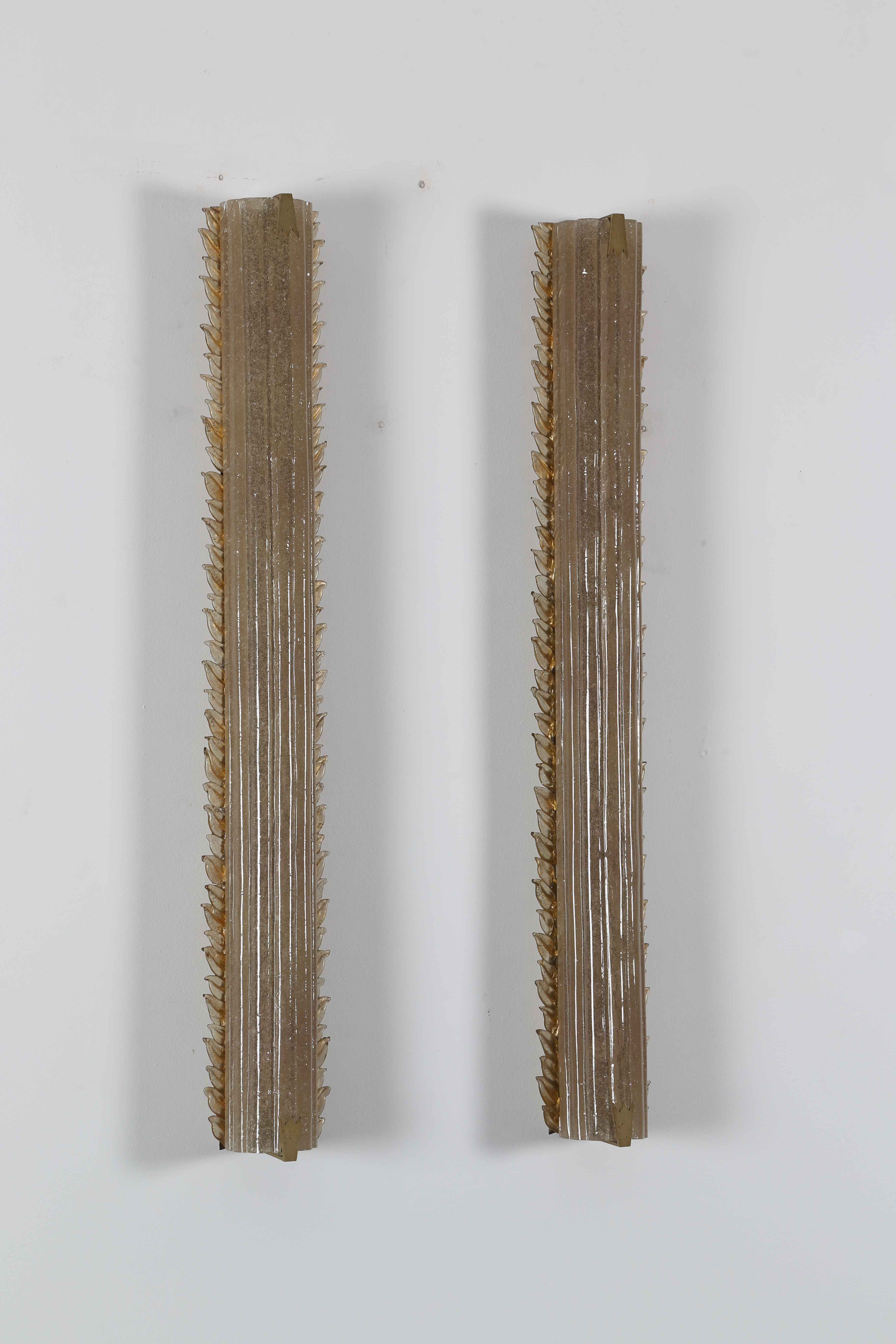 BAROVIER ERCOLE (1889 - 1974) Coppia di Grandi appliques in vetro pulegoso e costolato dorato. Vetro. Cm 112,00 x 82,00 x 8,50. Anni '30/'40.