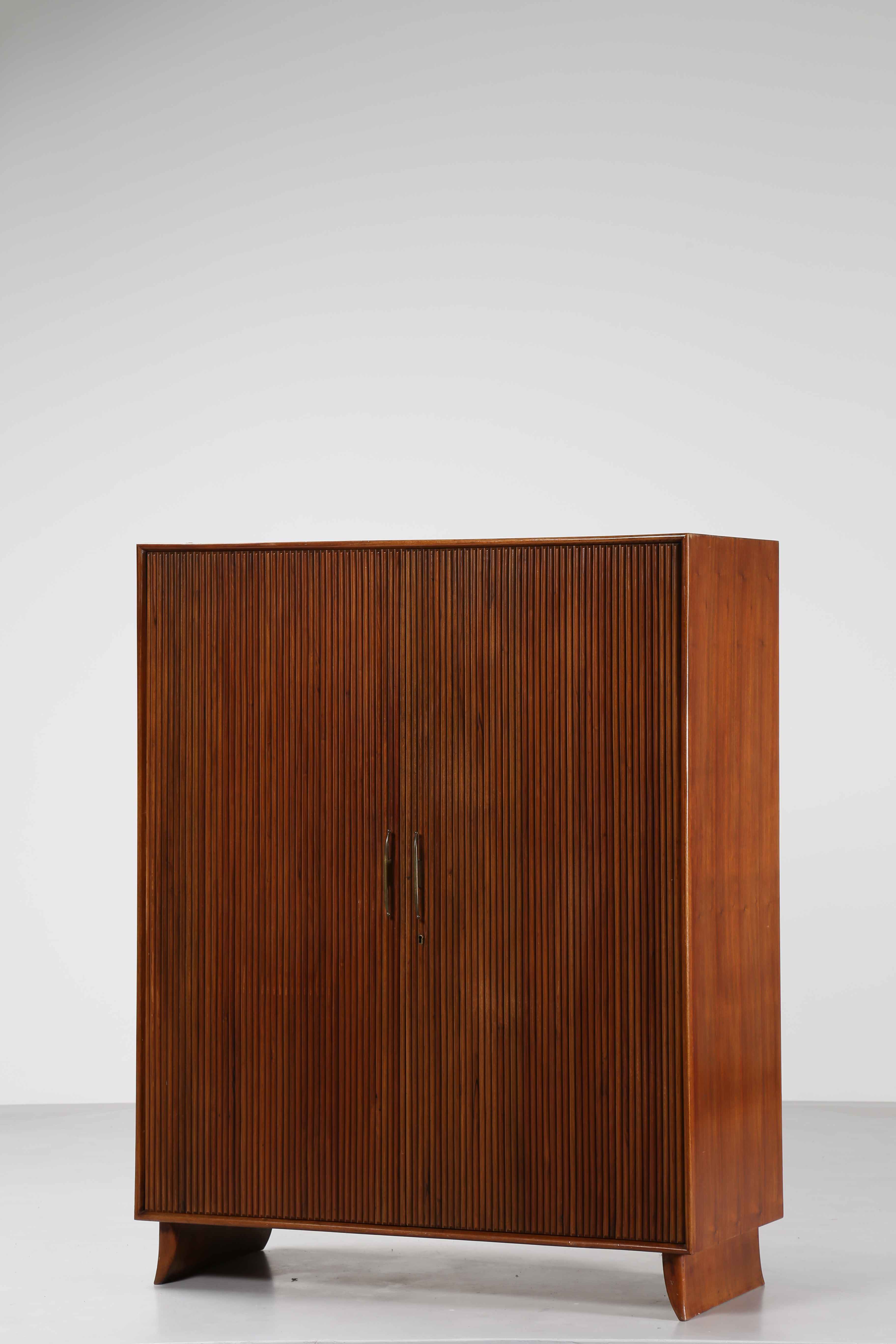BUFFA PAOLO (1903 - 1970) Armadio in noce grissinato. Legno e ottone. Cm 140,00 x 175,00 x 62,00. Esecuzione Galdino Maspero, Cantù 1938/1940. Pubblicazione: I mobili di Paolo Buffa a cura di Roberto Rizzi.