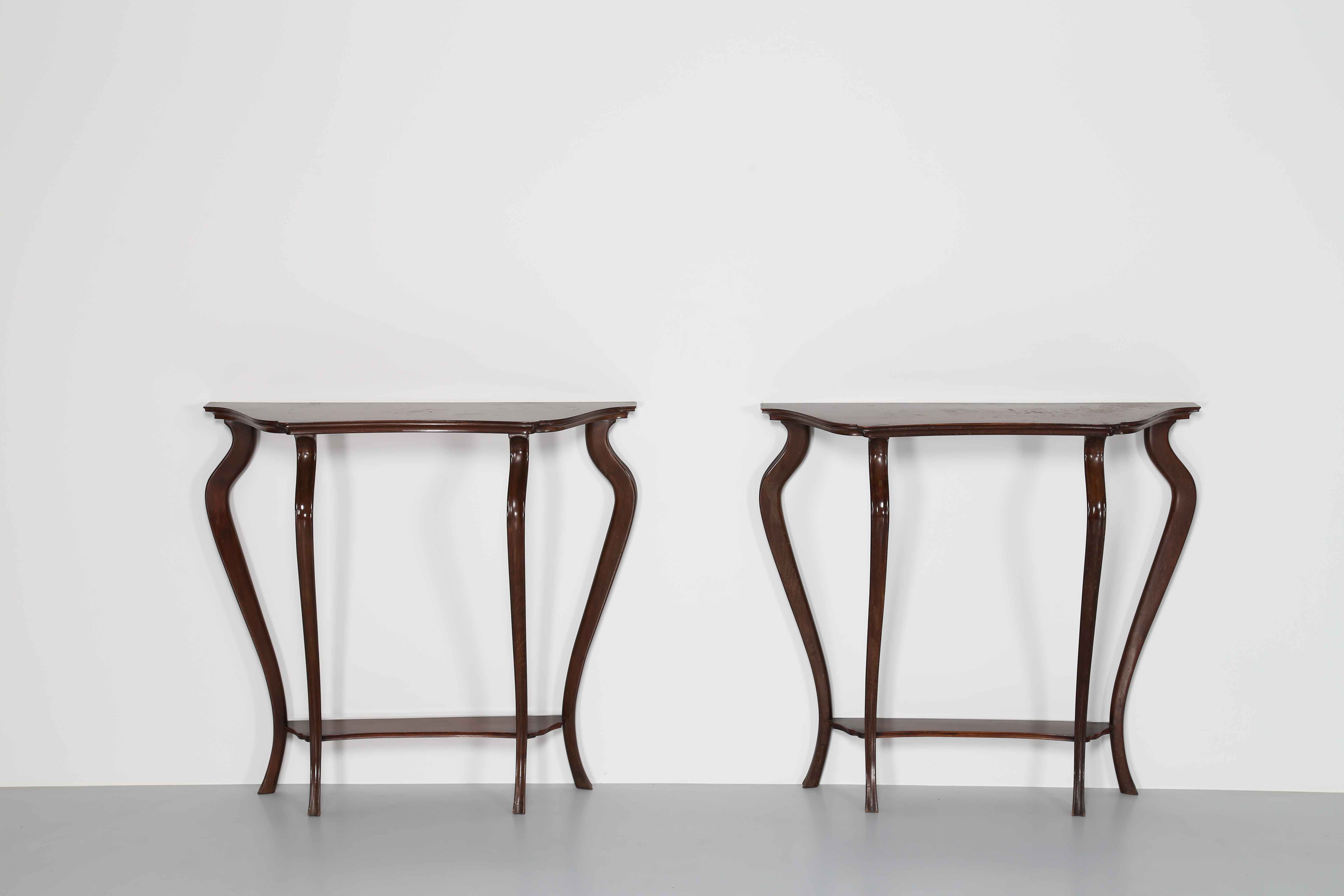 TEMPESTINI MAURIZIO (1908 - 1960) Coppia di consolle. Legno di noce. Cm 95,00 x 89,00 x 27,00. Firenze, anni '40.