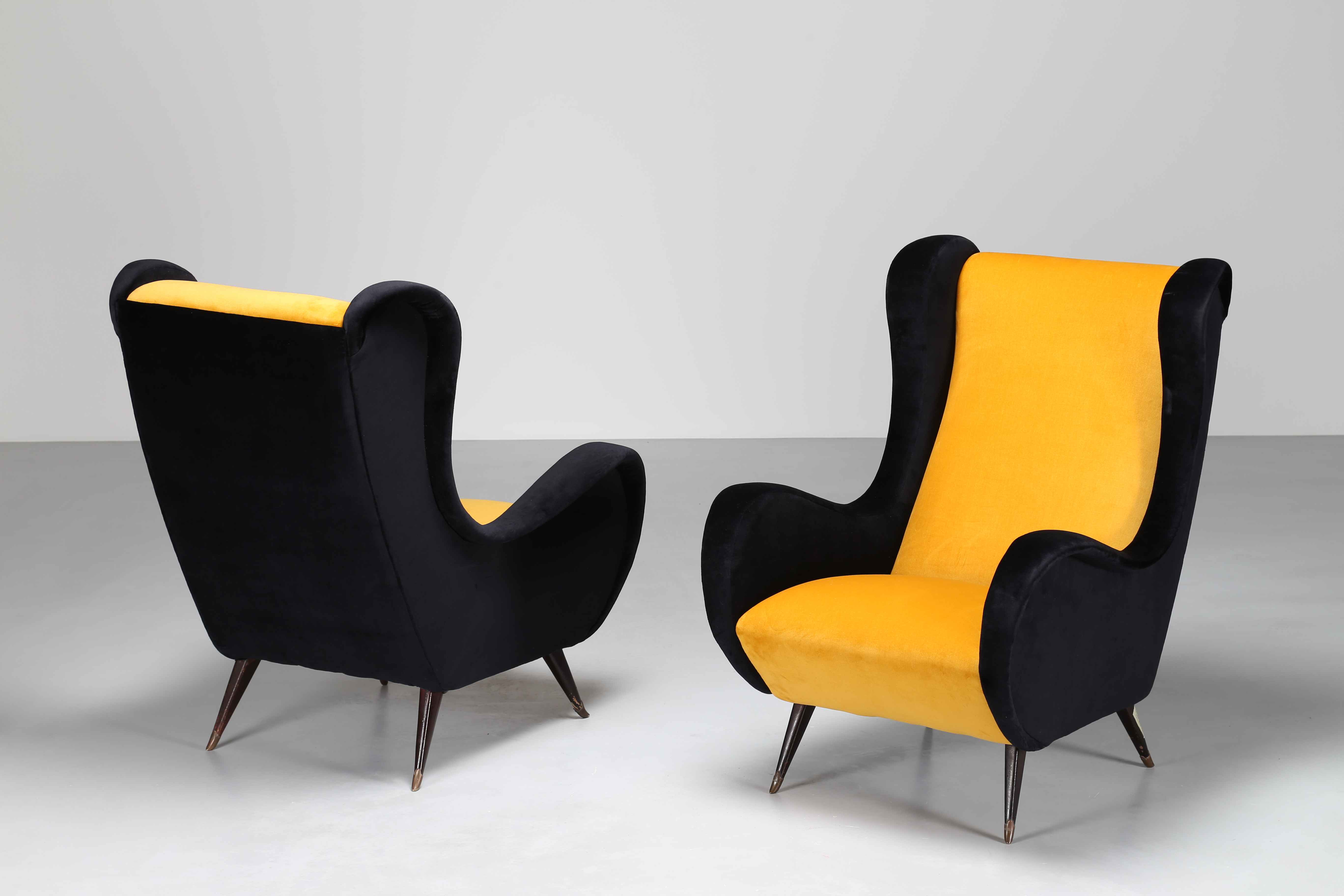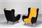 MUNARI FEDERICO Coppia di poltrone gialle e nere. 1950. Legno e tessuto. Cm 74,00 x 99,00 x 86,00. Padova.