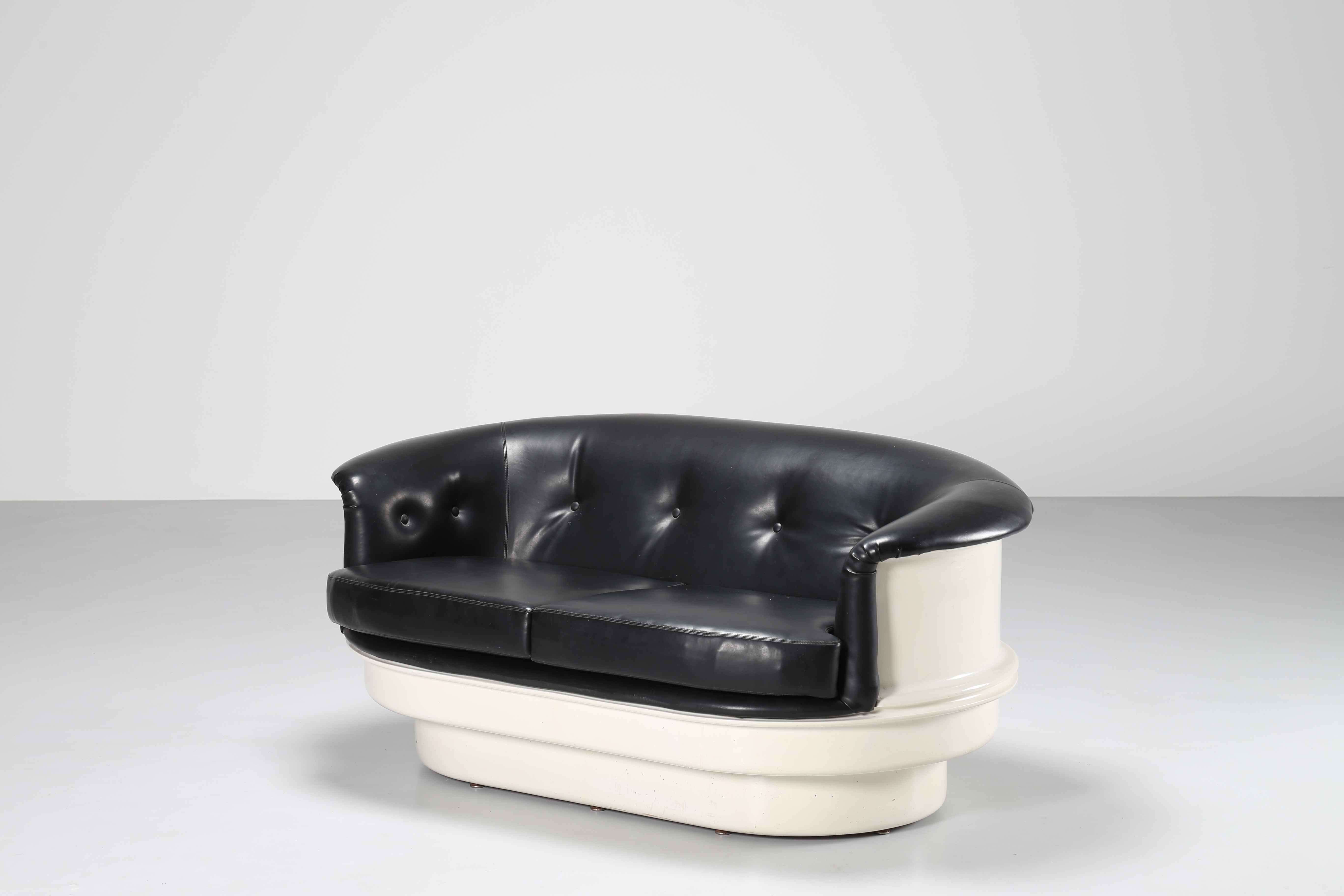 RINALDI GASTONE Per RIMA. Divano. 1966. Pelle e fiberglass.. Cm 190,00 x...