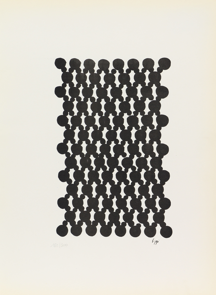 Gastone Biggi Senza titolo, 1967, litografia su carta, cm. 33x24, es. 182/300, firmata in lastra in basso a destra, opera tratta dalla cartellina "16 Litografie Biggi", a cura di Giulio Carlo Argan e Italo Tassoni, Editrice Foglio, senza cornice