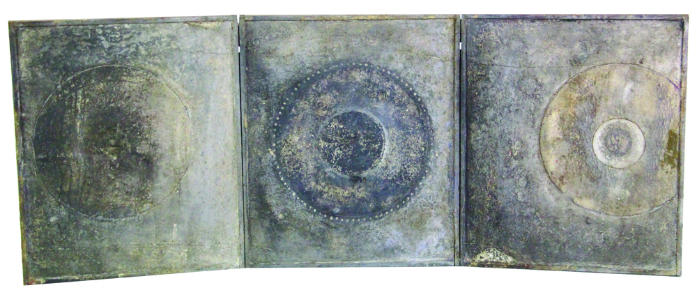 Andrea Neri Viaggio Notturno, 1989, affresco ed encausto su tre tavole, cm....