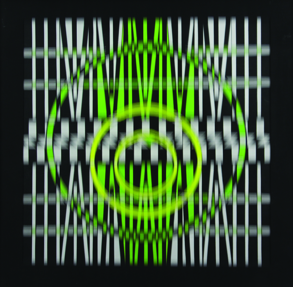 Guido Baldessari Composizione Vibrante, 1975, tecnica mista su cartoncino (plexiglass zigrinato linee orizzontali), cm. 62x62, etichetta dell'artista con numero di archiviazione al retro, certificato di archiviazione dell'Archivio Guido Baldessari su fotografia, opera pub