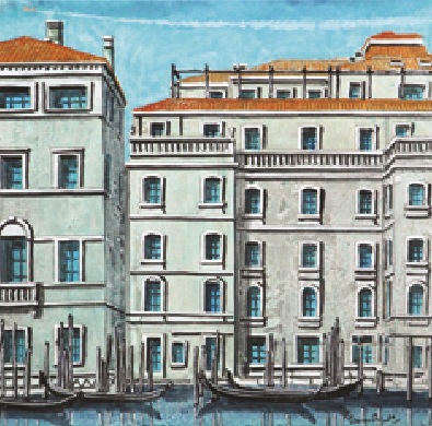 Tonino Caputo Palazzo Gaggia, Hotel Regina, acrilico su tela, cm. 30x30, firmato in basso a destra, firmato e intitolato al retro, certificato di autenticita' dell'artista su fotografia