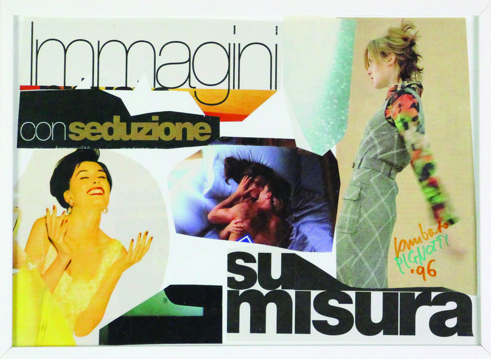 Lamberto Pignotti Immagini con Seduzione, 1996, collage su tavoletta telata,...