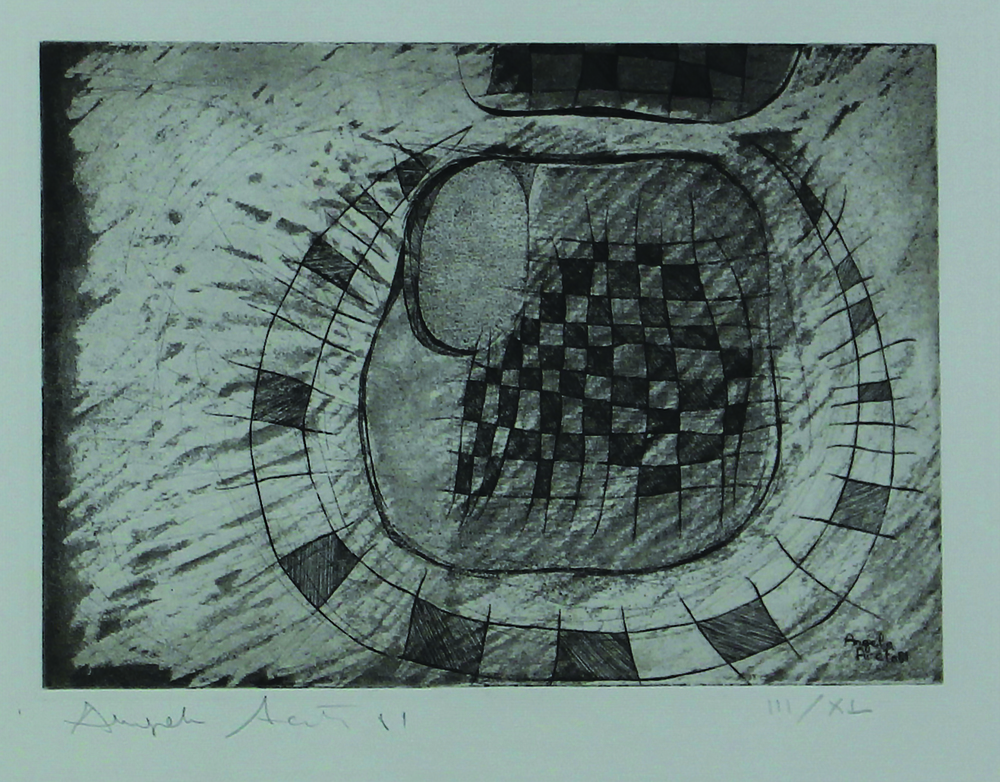 Angela Aceto Esitazioni, 1981, acquaforte acquatinta su carta da matrice in zinco, cm. 35x48 (lastra cm. 17,5x24,5), es. II/XL, firmata e datata in lastra in basso a destra, firmata e datata in basso a sinistra, oltre alle quaranta copia in numeri romani sono state stampate sei copie in numeri arabi e tre prove d'artista