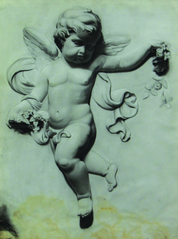 Lotto 103 | Anonimo Putto, grafite su carta, cm. 56x44, l'opera presenta evidenti macchie...