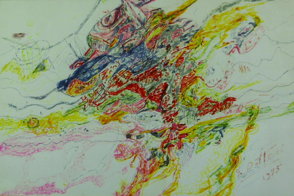 Gerardo Dottori Motivi Astratti, 1975, tecnica mista su carta, cm. 30x45, firmata e datata in basso a destra, firma dell'artista al retro con autentica notarile del dott. Francesco Tei del 29 Ottobre 1975