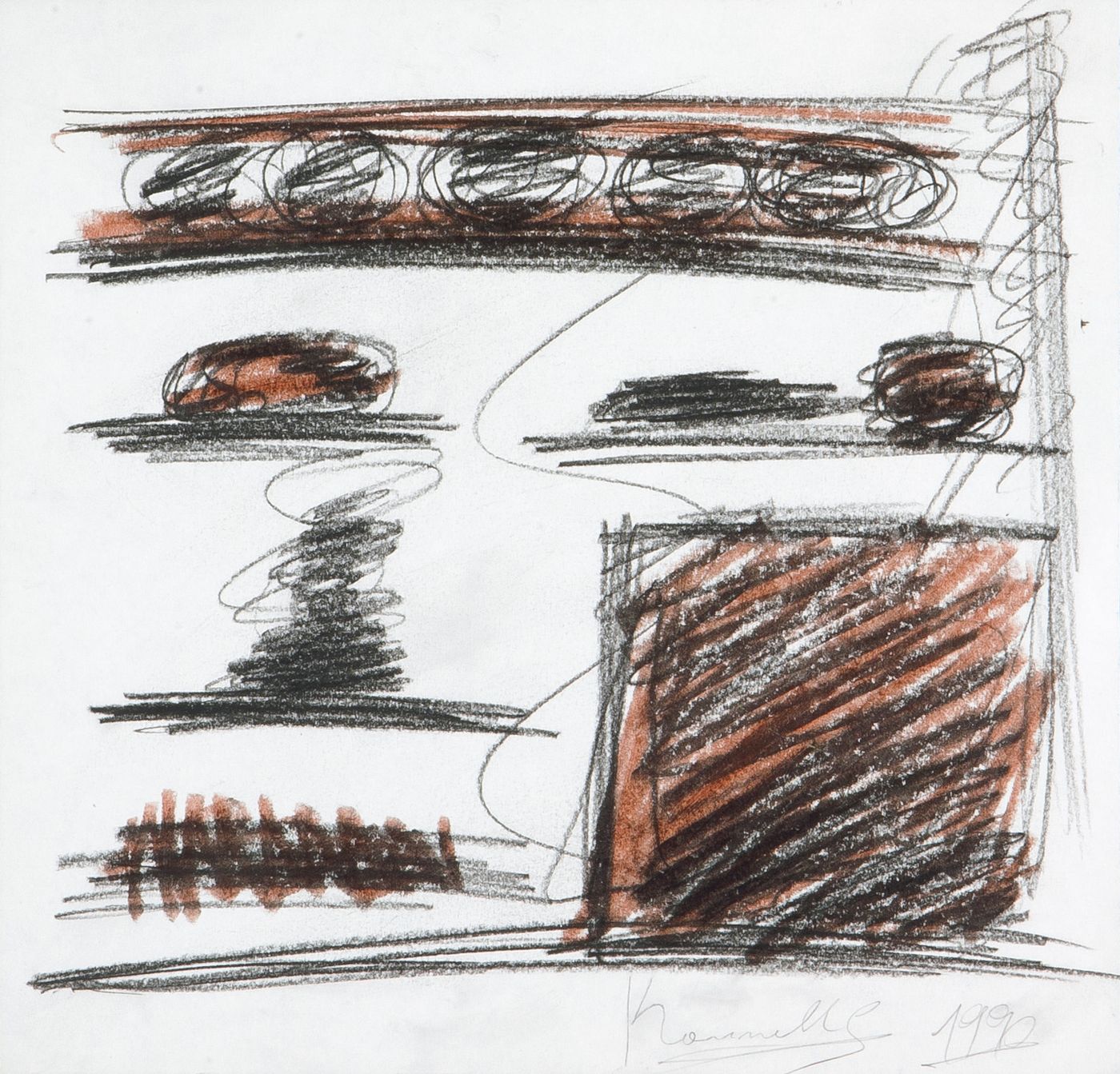KOUNELLIS JANNIS (Grecia 1936) - "Senza titolo" 1990, 21x22 tecnica mista su carta. Opera firmata e datata in basso a destra. Autentica dell'artista su fotografia