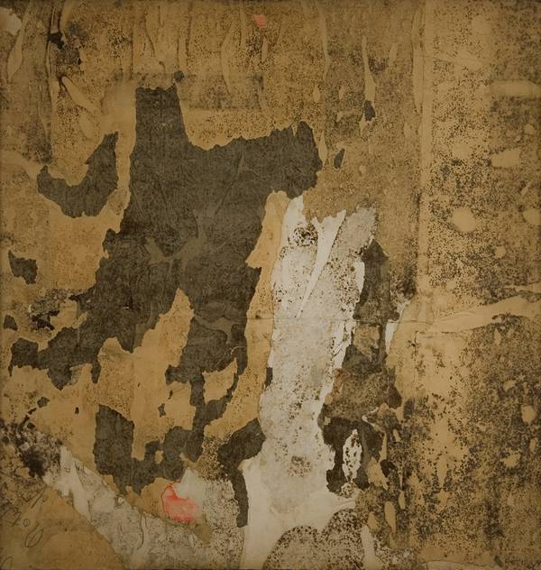 Mimmo Rotella Perduto - 1957 decollage su tavola di compensato cm. 44x42 Autentica su foto a cura di Plinio De Martinis; Certificato di Autenticità a cura della Farsetti Arte Provenienza: Galleria La Tartaruga, Roma;etichetta al retro “Termoraggi spa” Firma in basso a dx