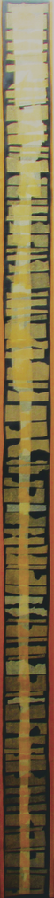Ignazio Moncada Trascrizioni, (anni '70), collage e pittura su tavola, cm. 220x14, firmato e intitolato al retro, timbro con firma dell'artista al retro, senza cornice