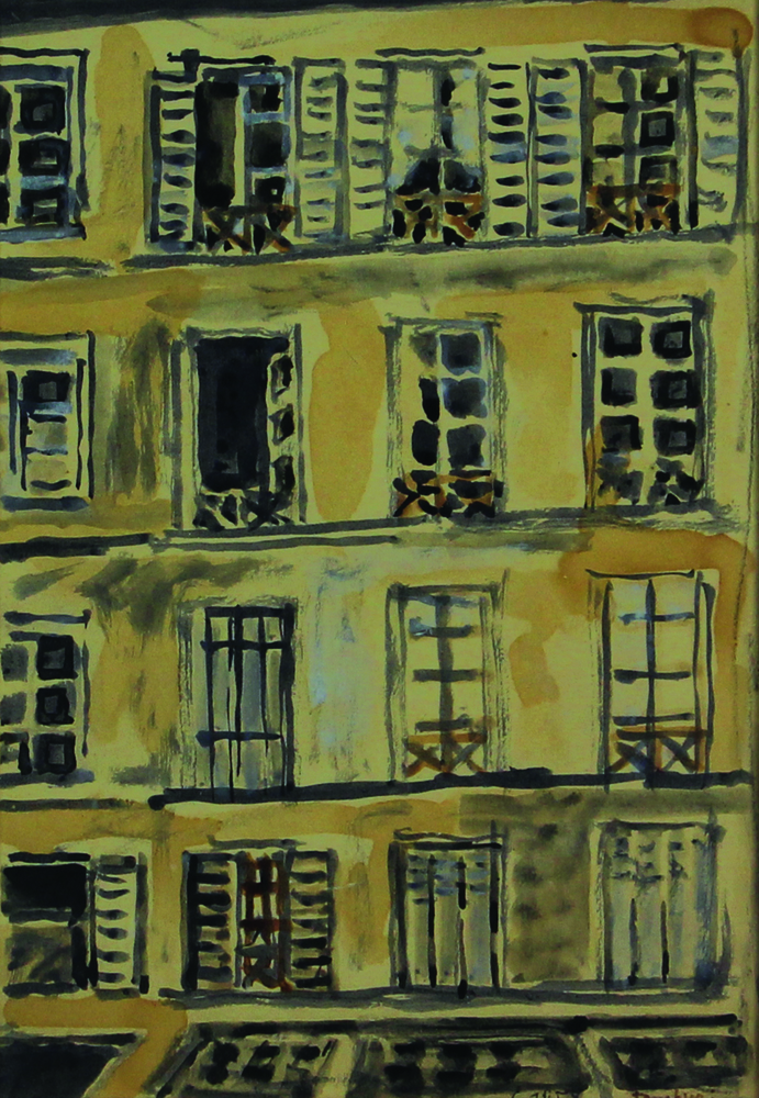 Orfeo Tamburi Chaussee d'Antin IX Paris, 1958, tecnica mista su cartoncino, cm. 32x22,5, firmata e datata in basso a destra, timbro "Galleria Maggiore di Bologna al retro, timbro "Galleria Patrizia di Montecatini Terme" al retro del cartoncino di supporto