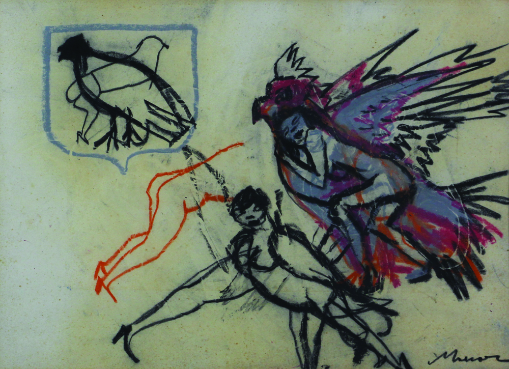 Mino Maccari Senza titolo, tecnica mista su carta, cm. 35x49, firmata in basso a destra, certificato di autenticità dell'artista su fotografia con timbro a secco Nemo Galleni, curatore di varie mostre di Mino Maccari