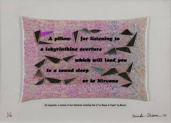 Mieko Shiomi Cd fragments: a mixture of four Overtures including that of “Le Nozze di Figaro” by Mozart - 2003 plastica, lettere adesive su cartoncino, es. 1/4 cm. 29x41 Firma in basso a dx