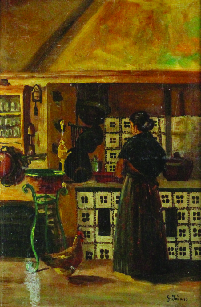 Gerolamo Induno Contadina in Cucina, 1879/1880, olio su tavola, cm. 50x34, firmato in basso a destra, expertise e archiviazione del professor di Floriano De Santi