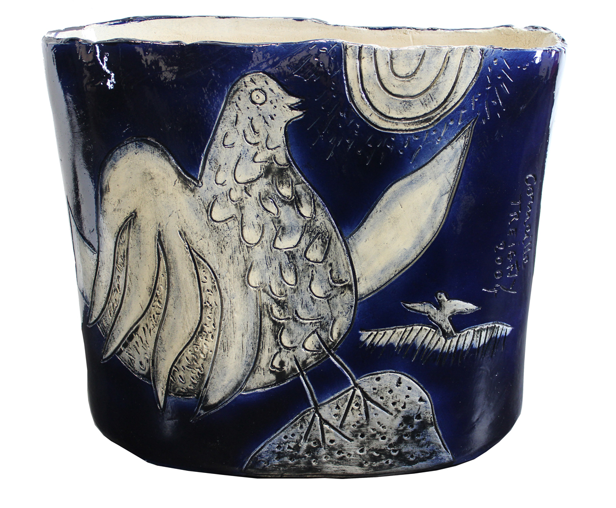 Corneille Treigny, 2004, vaso in ceramica e smalto colorato, cm. 42x48x20, firma, data e titolo incisi, etichetta Galleria Modenarte di Modena alla base, opera esposta alla mostra "CoBraA. 60th Anniversary" presso la Galleria Modenarte di Modena, 12 dicembre 2008 - 14 febbraio 2009, LOTTO PROVENIENTE DA IMPRESA E PERTANTO ASSOGGETTATO AD I.V.A. DEL 22% SUL PREZZO DI AGGIUDICAZIONE