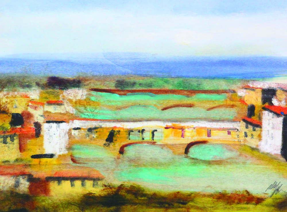 Salvatore Magazzini Ponte Vecchio Firenze, acrilico su tavola, cm. 30x40,...