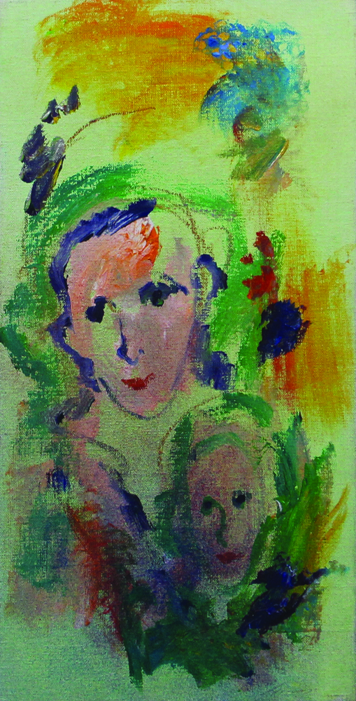 Ernesto Treccani Volti, tecnica mista su tela, cm. 40x20, firmata in basso a destra e al retro, certificato di autenticità dell'artista su fotografia, senza cornice