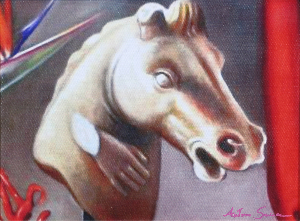 Antonio Sciacca Senza titolo, 2009/2010, fotocosmografia, olio e tecnica mista su tela Canvas Leonardo, cm. 30x40, es. 1/1, firmata in basso a destra, certificato di autenticità dell'artista su fotografia, certificato di autenticità con timbro Gian Michele Caggero del 30/05/2015