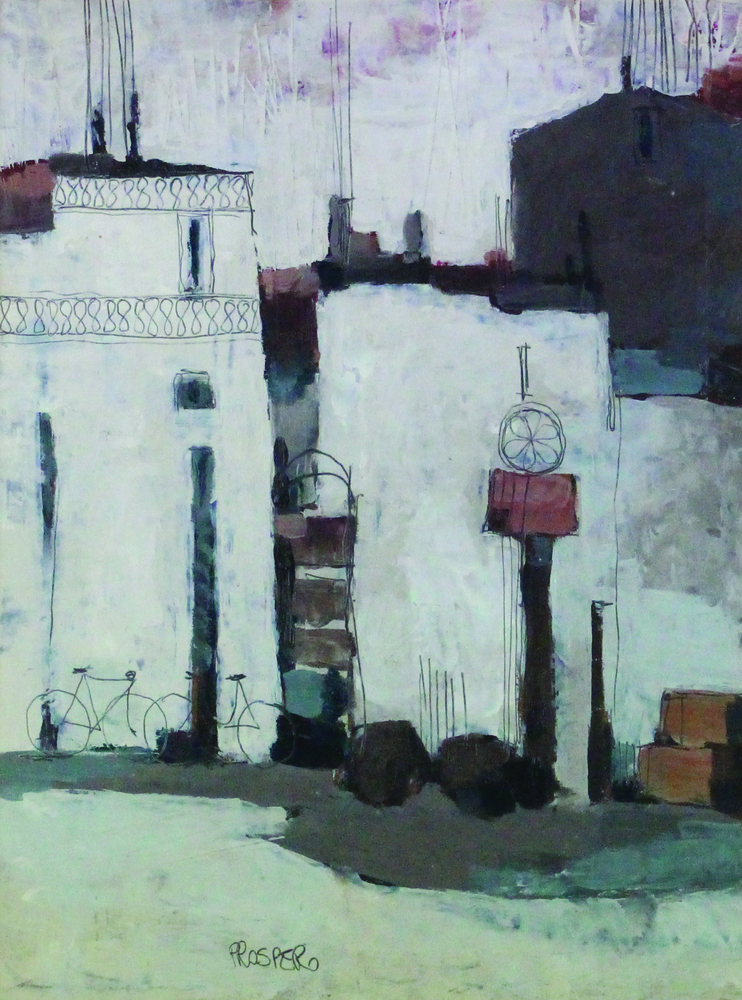 Prospero Riva Senza titolo, tecnica mista su tavola, cm. 40x30, firmato in basso al centro e al retro