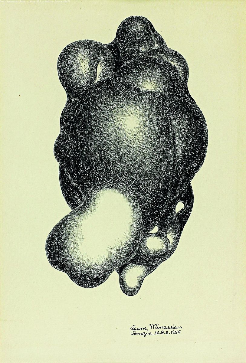 MINASSIAN LEONE (Costantinopoli 1905 - 1978 Venezia) - "Germinazione" Venezia 1956, 26x20 china su carta. Opera firmata, datata e localizzata in basso a destra; dedicata ad personam al retro. Già Galleria La Chiocciola, Padova (timbro al retro). Esp.: - 1956, Venezia, XXVIII Biennale Internazionale d'Arte (etichette al retro). Provenienza eredi A. Parisot
