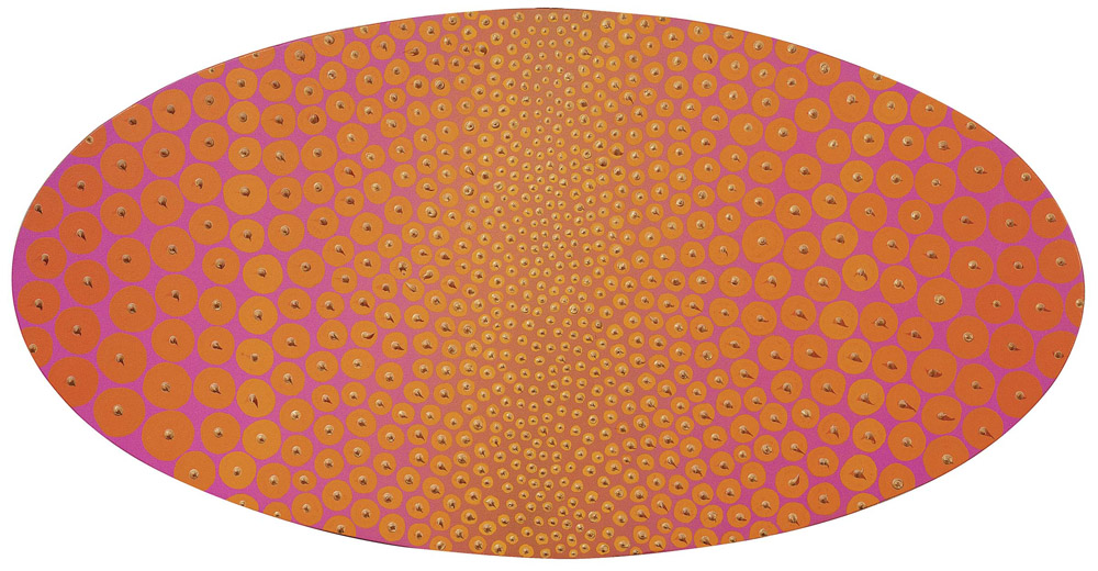 Jorrit Tornquist, Graz 1938, Pelle d'Oriente, 2004, Acrilico su tela, cm. 92,5x181, ovale, Firma, data e titolo al verso sulla tela e sul telaio: Tornquist / 2004 / Pelle d'Oriente; sul telaio: due timbri Studio f.22 / Modern Art Gallery / Palazzolo sull'Oglio., Foto autenticata dall'artista con etichetta Studio f. 22 Modern Art Gallery, Palazzolo sull'Oglio.,