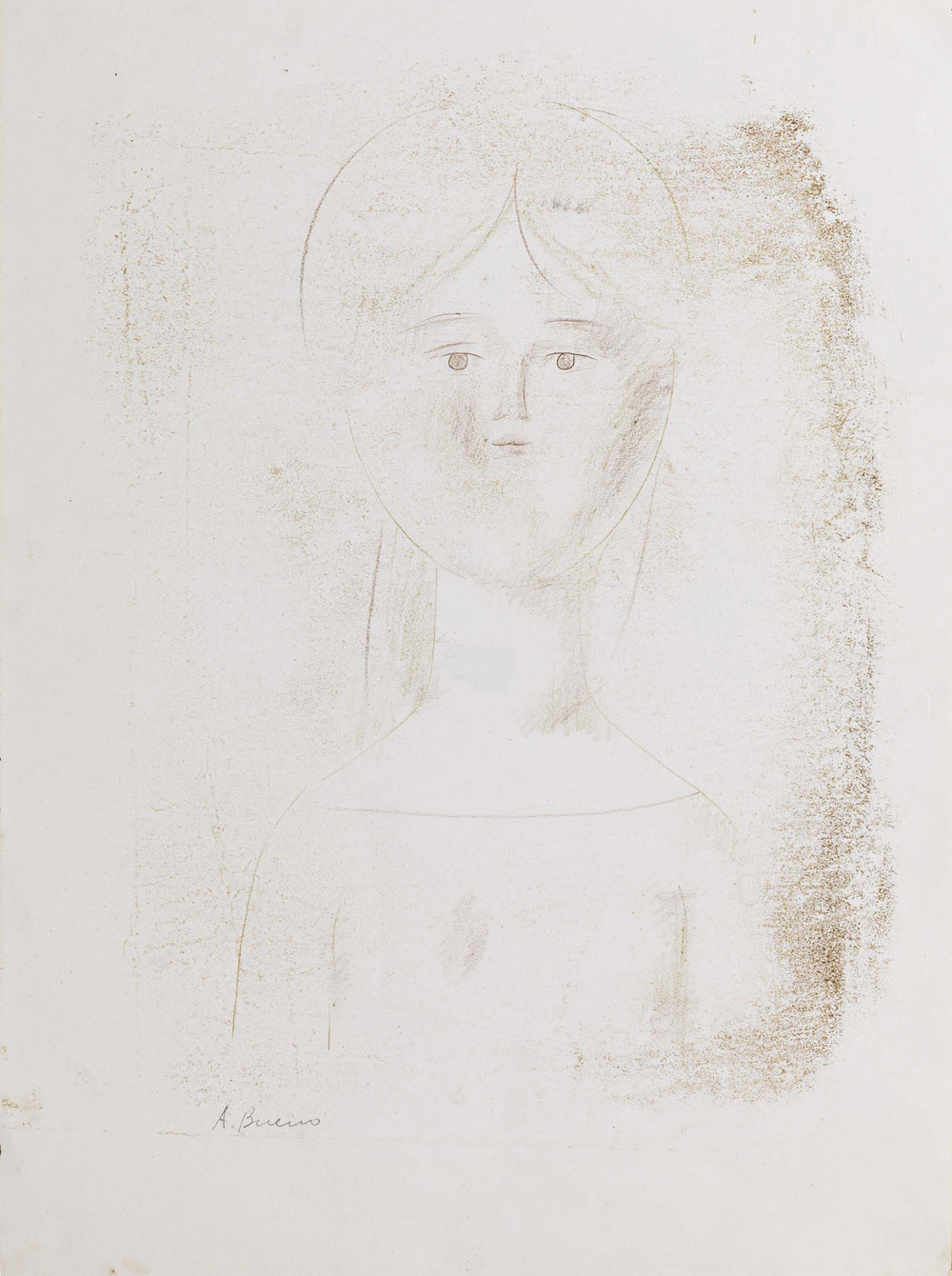 Antonio Bueno, Berlino 1918 - Fiesole (Fi) 1984, Figura di donna, 1969, Matite su carta, cm. 44,8x33,2, Firma in basso a sinistra: A. Bueno., Foto autenticata dall'artista, Firenze (Fiesole) 4/5/78, con n. 508.,