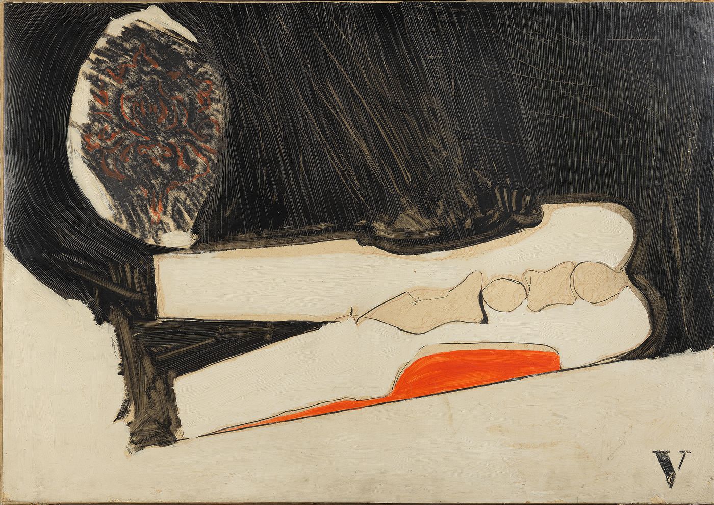 FUSCO MARIO (Torino 1934 – 1987) - "Le cose risalgono a 5000 anni fa" , 70x100 olio su tela. Esp: - Torino, Società Promotrice di Belle Arti, 124° Esposizione di Arti Figurative (Etichetta al retro)