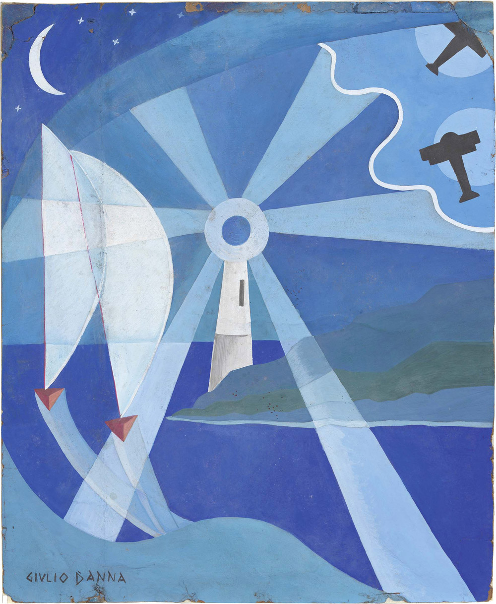 Giulio D'Anna, Villarosa (En) 1908 - Messina 1978, Lo Stretto, Tecnica mista su cartoncino, cm. 46,5x38, Firma in basso a sinistra: Giulio D'Anna., Restauri.,