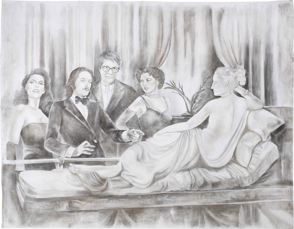 Gian Marco Montesano, Torino 1949, P'Io e Gino, Acrilico su tela, cm. 214x271, Titolo e firma al verso: "P'Io e Gino" / Montesano.,