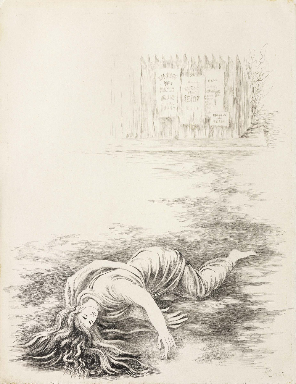 Fabrizio Clerici, Milano 1913 - Roma 1993, Senza titolo, 1945, China su cartoncino, cm. 32,3x24,8, Monogramma e data in basso a destra: FC 1945., Eseguito nel 1945 per "Leviathan" di Julien Green, otto illustrazioni di Fabrizio Clerici, Arnoldo Mondadori Editore, Milano, 1946.,