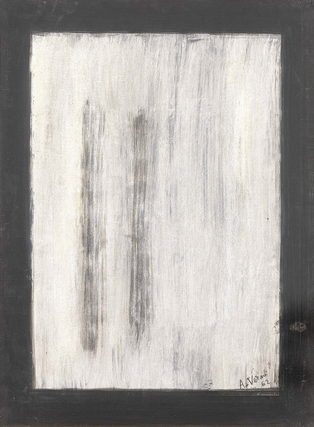 Arturo Vermi, Bergamo 1928 - Verderio (Lc) 1988, Lapide, 1962, Tecnica mista su carta applicata su tela, cm. 69,5x50,5, Firma e data in basso a destra: A. Vermi / 62., Certificato su foto di Anna Maria Rizzo, con n. L26F131102E976.,