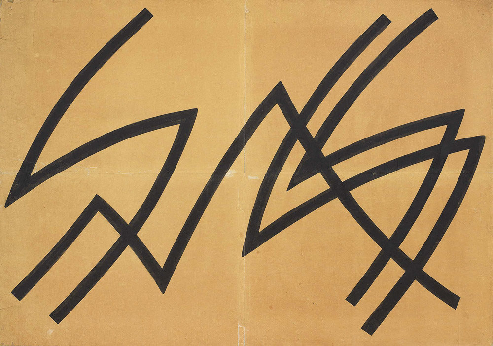 Ettore Colla, Parma 1896 - Roma 1968, Studio per ingrandimento, 1951, Tempera grassa su carta applicata su tela, cm. 140,5x200,5, Al verso sul telaio: timbro Spazio Sette / Verona Italy., Bibliografia: Giorgio De Marchis, Sandra Pinto, Colla, con una prefazione di J.J. Sweeney e una poesia di W. Sandberg, Bulzoni Editore, Roma, 1972, p. 58, n. 64a., Alcuni difetti.,