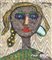 Corneille e Enrico Baj, Liegi 1922 - Parigi 2010 e Milano 1924 - Vergiate - 2003, Mata Hari, 2000, Tecnica mista su stoffa, cm. 40x35, Firme e data in alto: Baj / Corneille / 2000., Foto autenticata dagli artisti, in data ottobre 2000., Esposizioni: Baj Corneille, Galleria San Carlo, Milano, novembre 2001, cat. p. 48, illustrato a colori.,