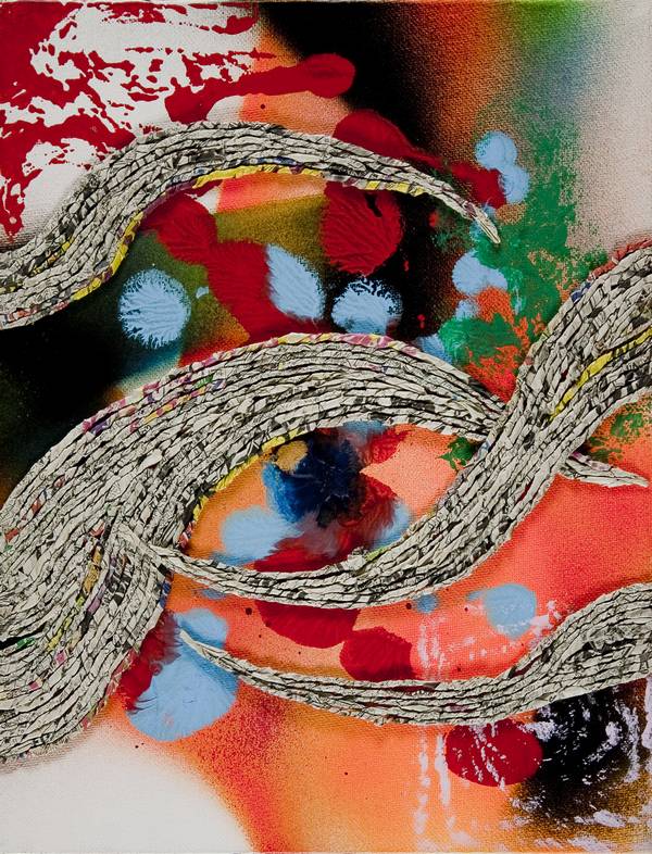 Takada Senza titolo - 2008 tecnica mista e composizioni di carta arrotolata su tela dipinta cm. 35x27