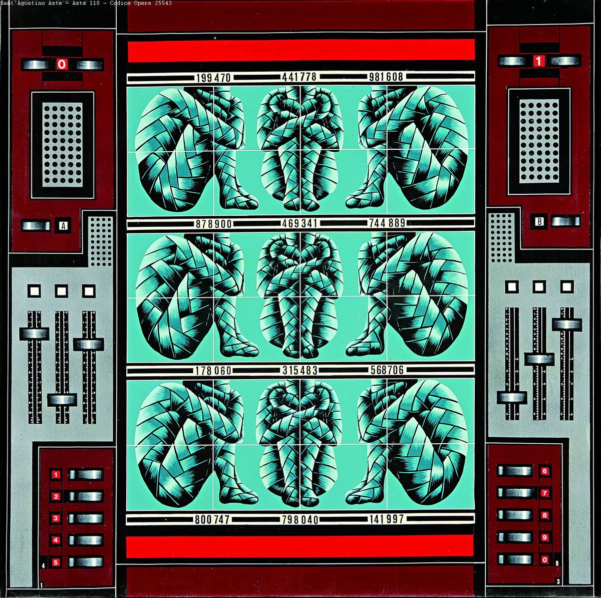 GERICO (GERI PIERO) (Somma Lombardo (Varese) 1946) - "Casellario" 1977, 70x70 acrilico su tela. Opera firmata, datata e intitolata al retro. Timbro dell'Atelier dell'artista sul retro con il numero 619. Già Galleria Vinciana, Milano (timbro al retro sul telaio)