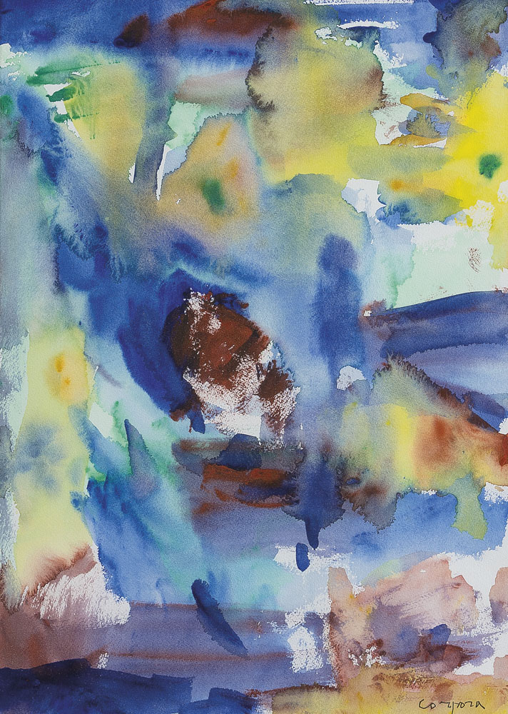 acquerello su carta cm 51x36, firma in basso a destra, firma e titolo al retro, dichiarazione d'autenticità dell'artista ed etichetta con firma della Galleria d'Arte Di Summa (Roma) su foto.