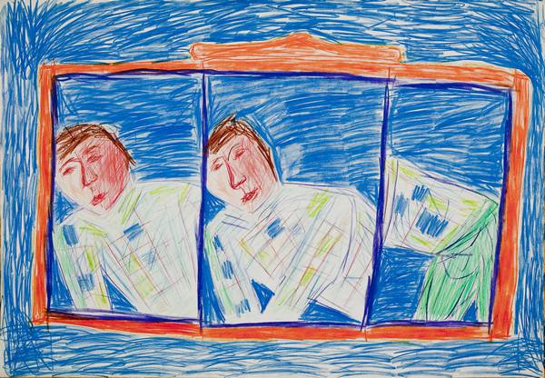 Mario Della Vedova Studio per ritratto moderno in specchio fine ottocento - 1985 pastello ad olio su cartoncino intelato cm. 70x100 Firma sul retro