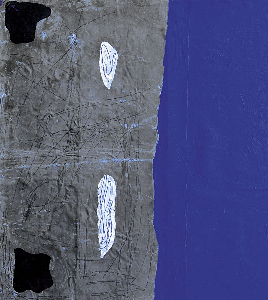 piombo e tecnica mista su tavola cm 52x46x4, firma titolo e anno al retro, dichiarazione d'autenticità dell'artista e timbro della Galleria Perlini su foto, opera priva di cornice.