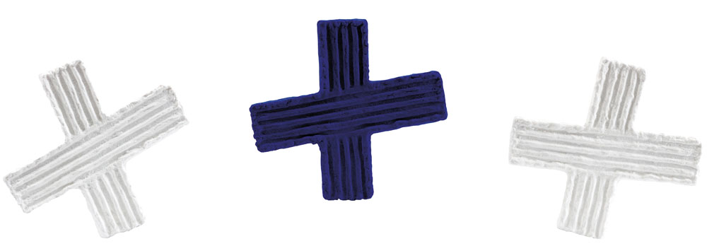 installazione di 3 elementi cm. 37x40 ca. cadauno, totale cm. 40x135x5, firma, titolo, anno e località (Milano) al retro dell'elemento bianco di sinistra, dichiarazione d'autenticità dell'artista e Archivio Pino Pinelli (MI) su 2 foto, opera priva di cornice.
