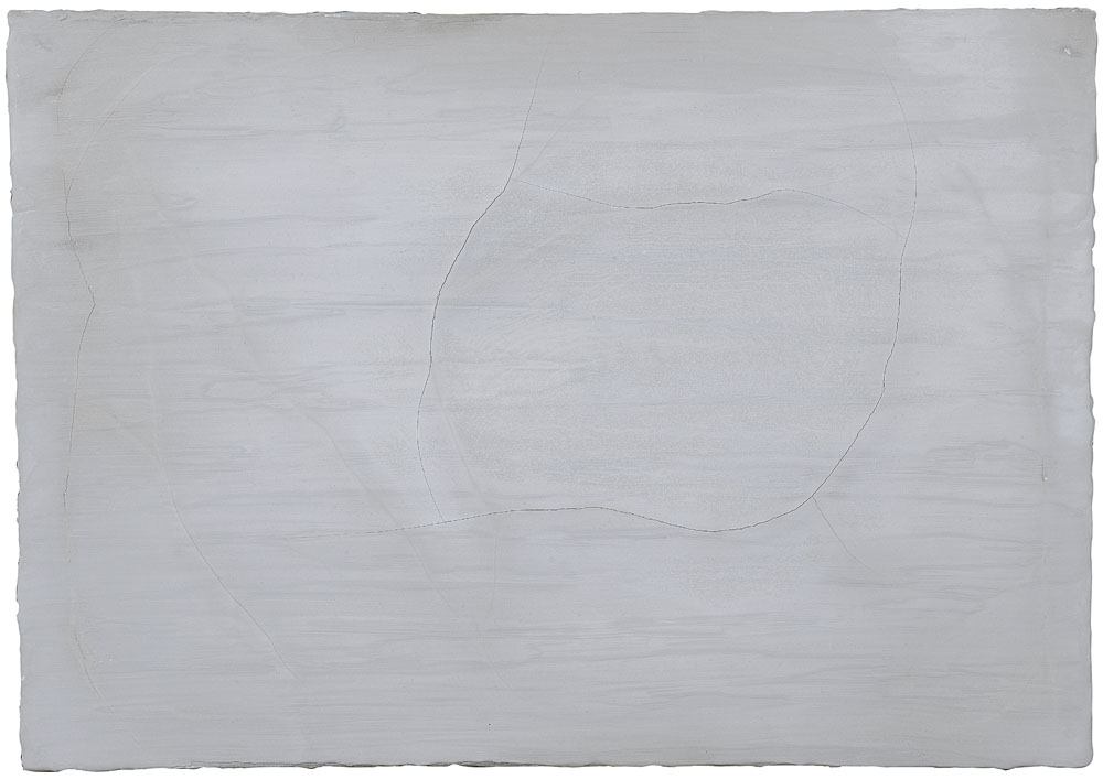 cemento su tela applicata su tavola cm. 50x70, firma, anno e timbro dell'artista al retro, dichiarazione d'autenticità dell'artista su foto, opera priva di cornice, le venature del cemeneto che si riscontrano sono parte integrante dell'opera, non sono da considerarsi rotture.