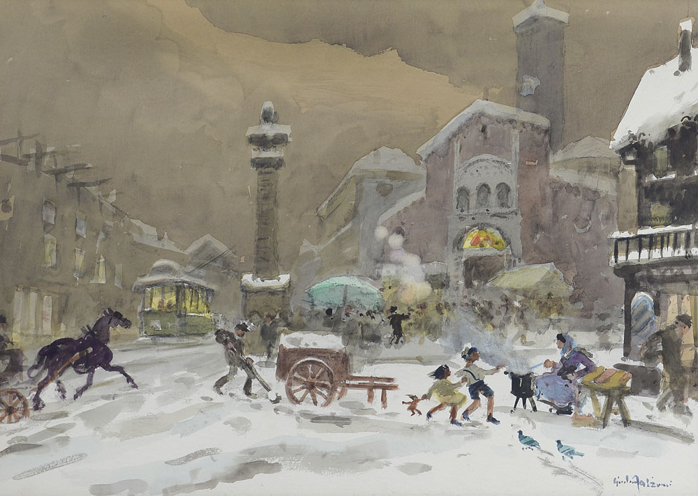 FALZONI GIULIO Marmirolo 1900 - Milano 1978Vecchia Milano, Piazza S....